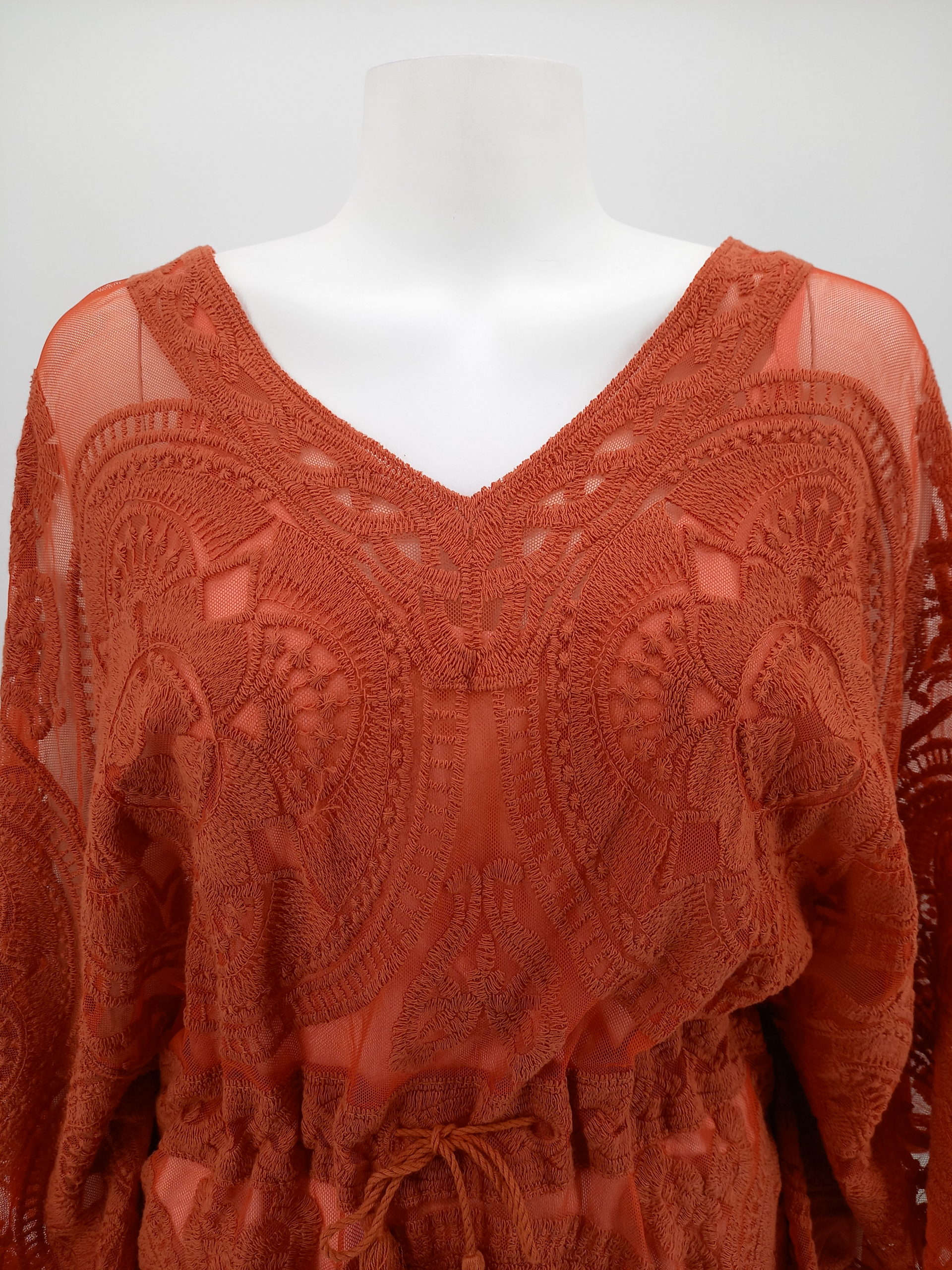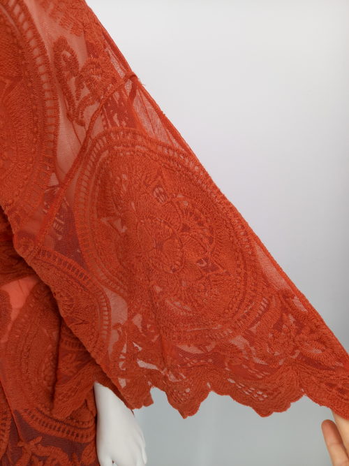 Mitoitus: L koko, käy monenkokoiselle, väljä malli, pituus:80cm, vyötärö: 62cm, povelle runsaasti tilaa.